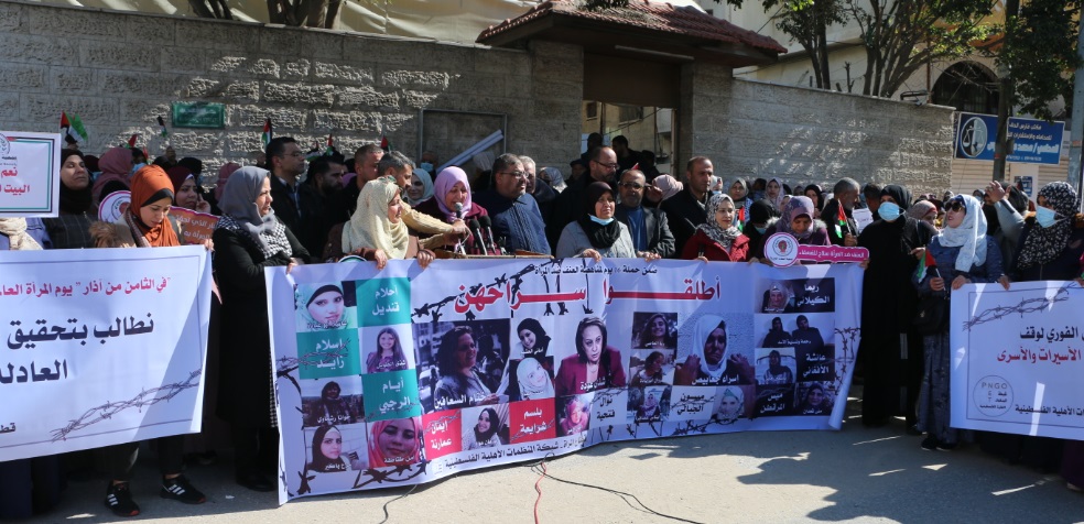 وقالت مديرة مؤسسة الثقافة والفكر الحر في غزة مريم زقوت، في كلمة نيابة عن قطاع المرأة بالشبكة: "إننا في قطاع المرأة في شبكة المنظمات الأهلية نقف اليوم أمام مؤسسة حقوقية أممية دولية وقفة دعم لأسرانا".