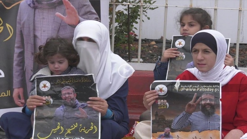 وقال شقيق الأسير المضرب خضر عدنان، إن "أمن محكمة الاحتلال هدد زوجة الشيخ خضر، رندة موسى، بإخراجها بالقوة في حال استمرت باعتصامها".