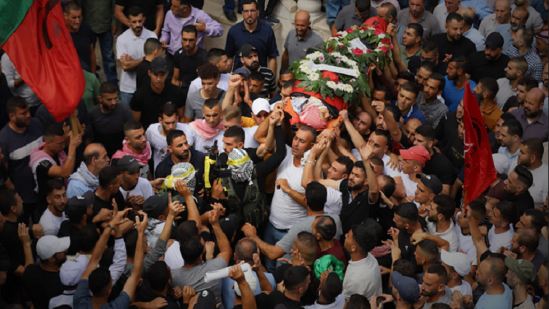أريحا: شيعت جماهير صباح اليوم الأثنين، الشهيد الفتى جبريل محمد اللدعة (17 عامًا)، والذي ارتقى بعد إصابته برصاصة مباشرة في الرأس، في مخيم عقبة جبر جنوب غرب مدينة أريحا.