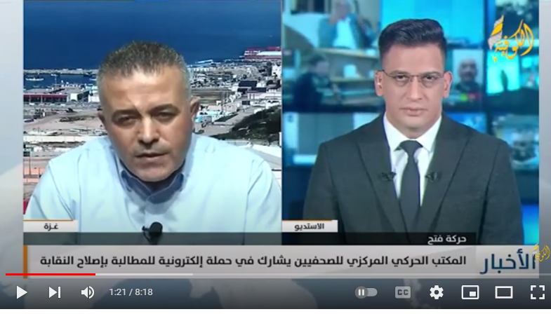 غزة: قال عضو المكتب الحركي للصحفيين في ساحة غزة شريف النيرب، إن الحراك الصحفي يهدف إلى إنقاذ القانون والنظام المعمول به داخل النقابة ، بعد أن تجرأت على القانون فئة متنفذة تعمل لصالح أجندات حزبية وسياسية على النقابة، وذلك من خلال استبعاد عشرات الصحفيين من الدخول في الجمعية العامة التي تنتخب نقابة تمثل جميع شرائح المجتمع بكافة توجهاتهم السياسية والحزبية.