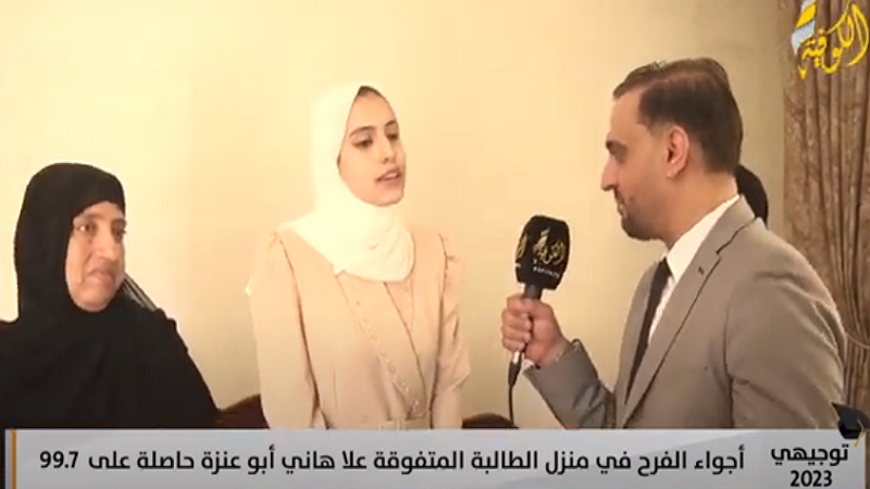 فيديو|| المتفوقة علا أبو عنزة للكوفية: لحظات التوتر تحولت لفرحة عارمة بعد إعلان النتيجة