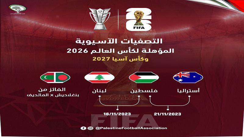 القدس المحتلة: حل منتخبنا الوطني الأول لكرة القدم، في المجموعة التاسعة إلى جانب منتخبات أستراليا ولبنان والفائز من مباراة منتخبي المالديف وبنغلادش، في قرعة التصفيات المؤهلة لكأس العالم 2026، وكأس آسيا 2027.