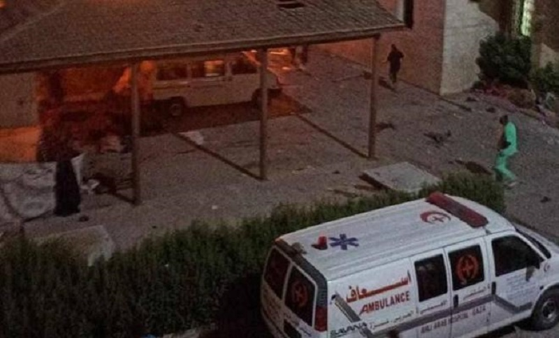 وقال المكتب الإعلامي الحكومي في غزة، إنها "جريمة حرب جديدة يرتكبها الاحتلال بقصف ساحة مستشفى الأهلي العربي وسط مدينة غزة".