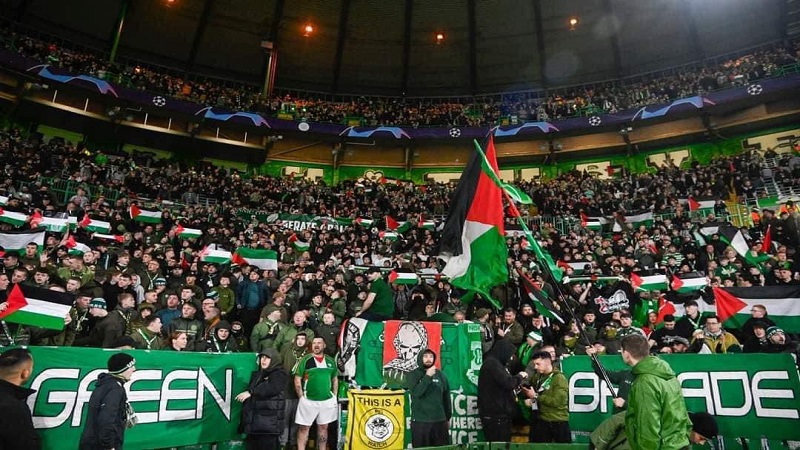 متابعات: حرصت جماهير نادي سيلتيك الأسكتلندي على رفع الأعلام الفلسطينية في المدرجات عند بداية مباراة الفريق مع أتليتيكو مدريد ضمن المجموعة الخامسة بدوري أبطال أوروبا لكرة القدم يوم الأربعاء.