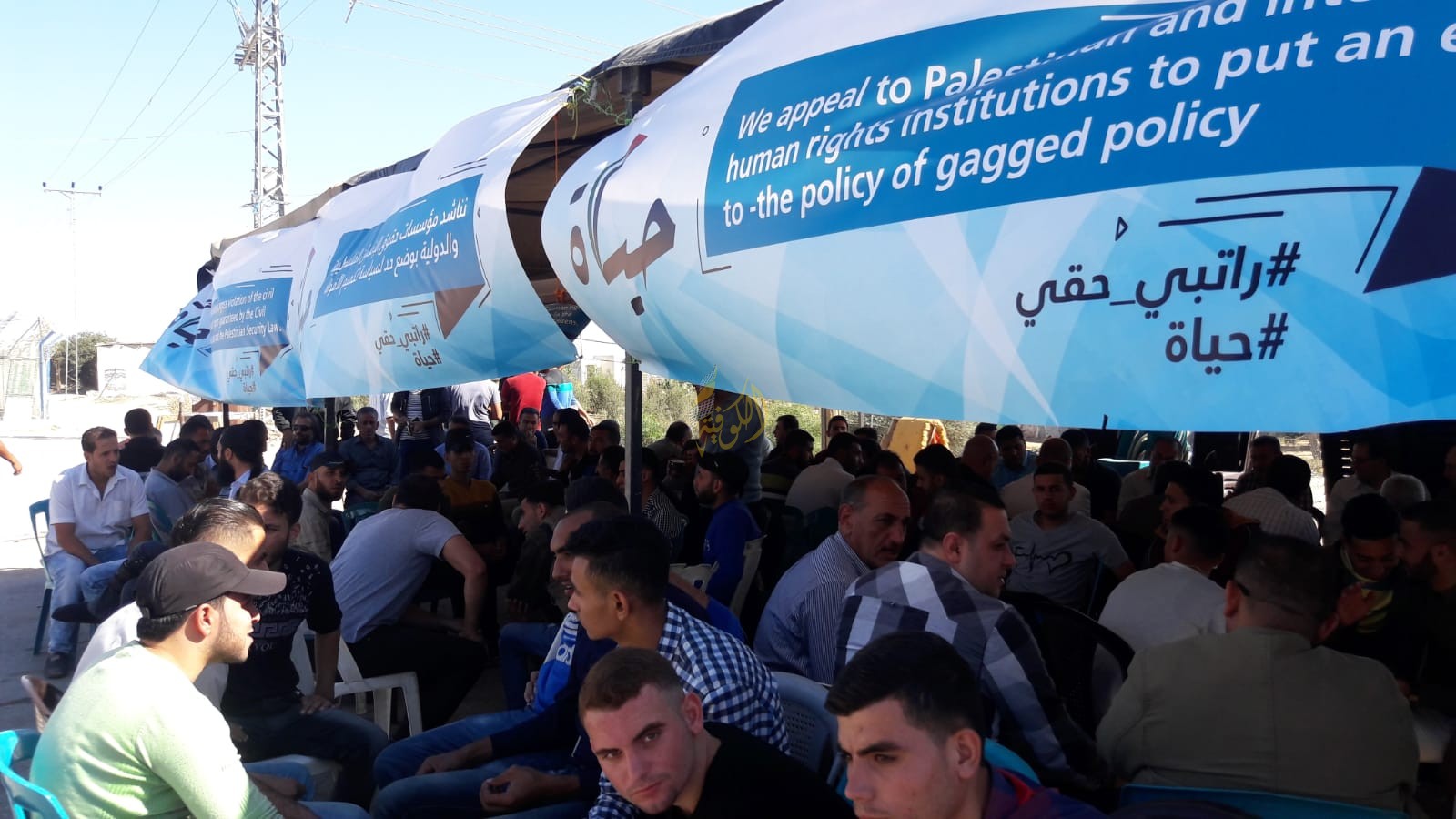 وقام المحتجون بالاحتشاد أمام خيمة الاعتصام التي أقامها موظفون وأسرى قطعت رواتبهم أمام منزل الرئيس محمود عباس بمدينة غزة، وسط هتافات تطالب بإرجاع الرواتب لهم.