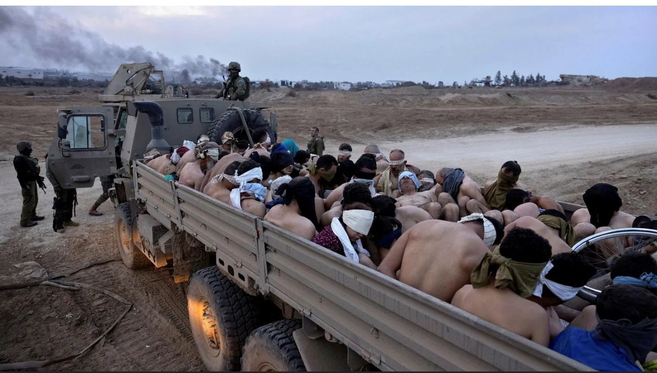 الاحتلال نشر في الأسابيع الأخيرة صورا لعشرات المعتقلين لا يرتدون سوى ملابس داخلية تحت حراسة جنود الاحتلال، وهم معصوبو الأعين ومكبلو اليدين، ويجلسون أو يركعون على الأرض في أحد شوارع غزة.