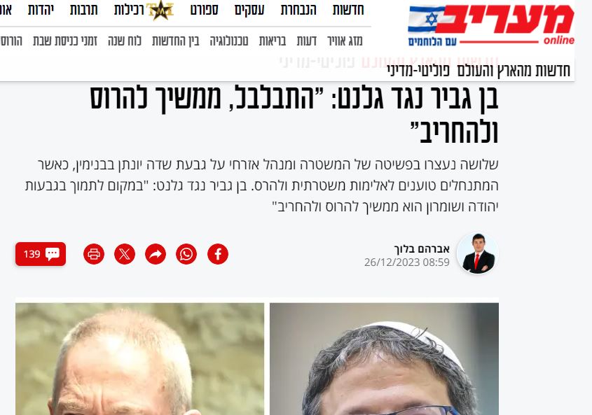 ترجمة خاصة للكوفية: هاجم وزير الأمن القومي المتطرف إيتمار بن غفير، وزير جيش الاحتلال يوآف غالانت، واصفا إياه بالمرتبك.