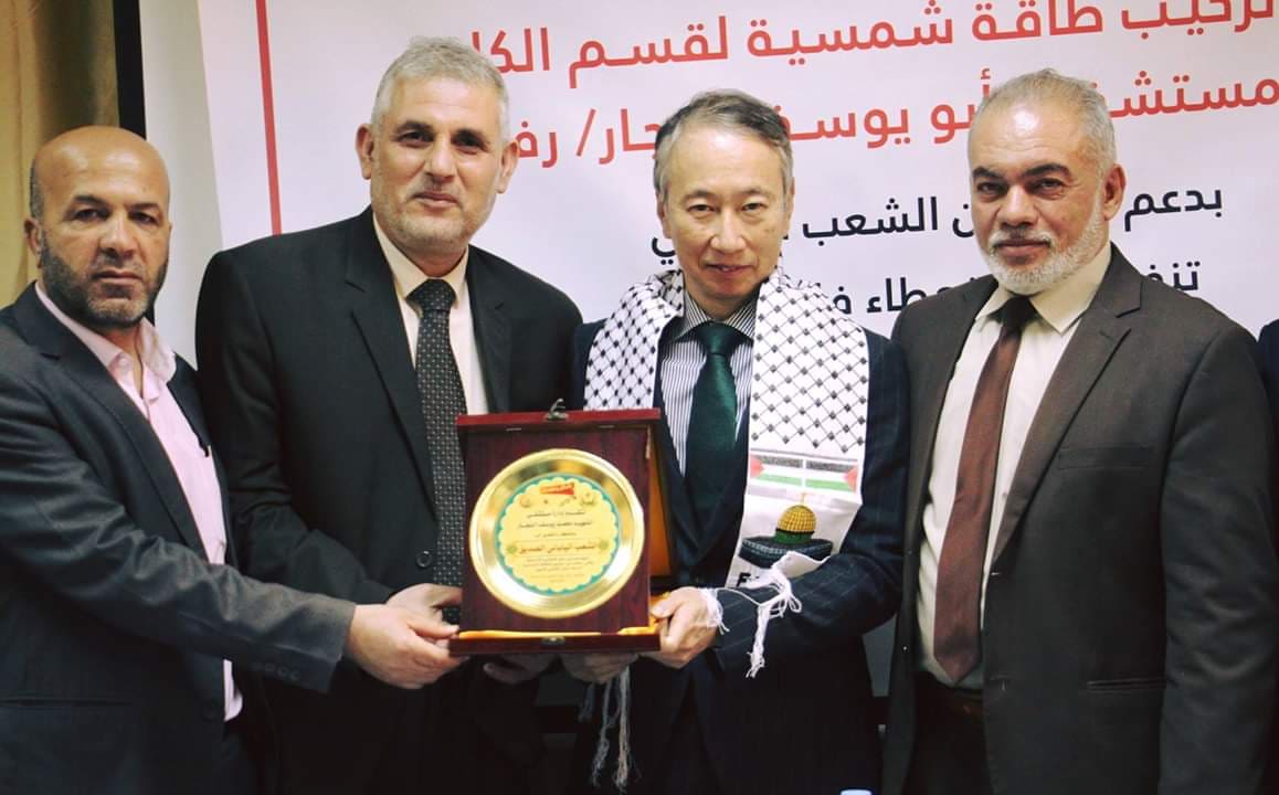 السفير الياباني يدشن مشروع الطاقة الشمسية لقسم الكلية الصناعية بمستشفى النجار في رفح