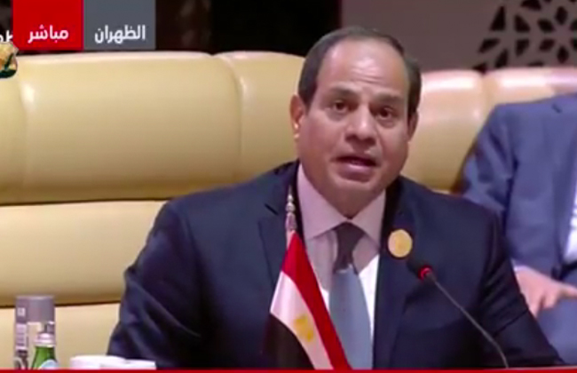 وأضاف السيسي، في الجلسة الافتتاحية للقمة العربية الـ29 بالظهران، "إنني لا أبالغ إن قلت إن بلادنا ومنطقتنا تواجه أخطر أزمة منذ استقلالها، وعلينا جميعا تقع مسئولية كبرى في وقف هذا التردي في الأوضاع العربية واستعادة الحد الأدنى من التنسيق المطلوب لإنقاذ الوضع العربي، والوقوف أمام أخطر الهجمات".