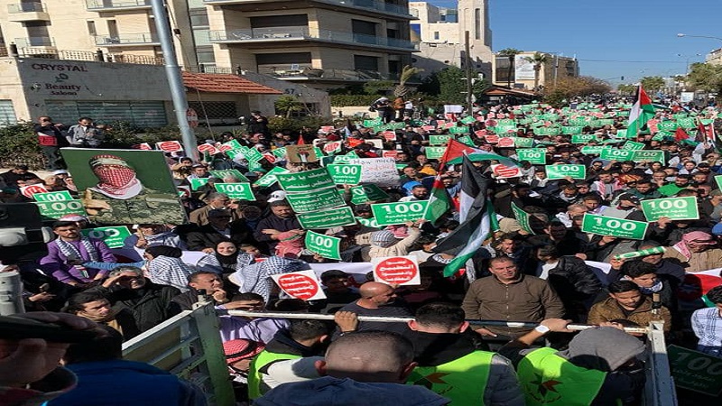 آلاف الأردنيين يتظاهرون نصرة لفلسطين