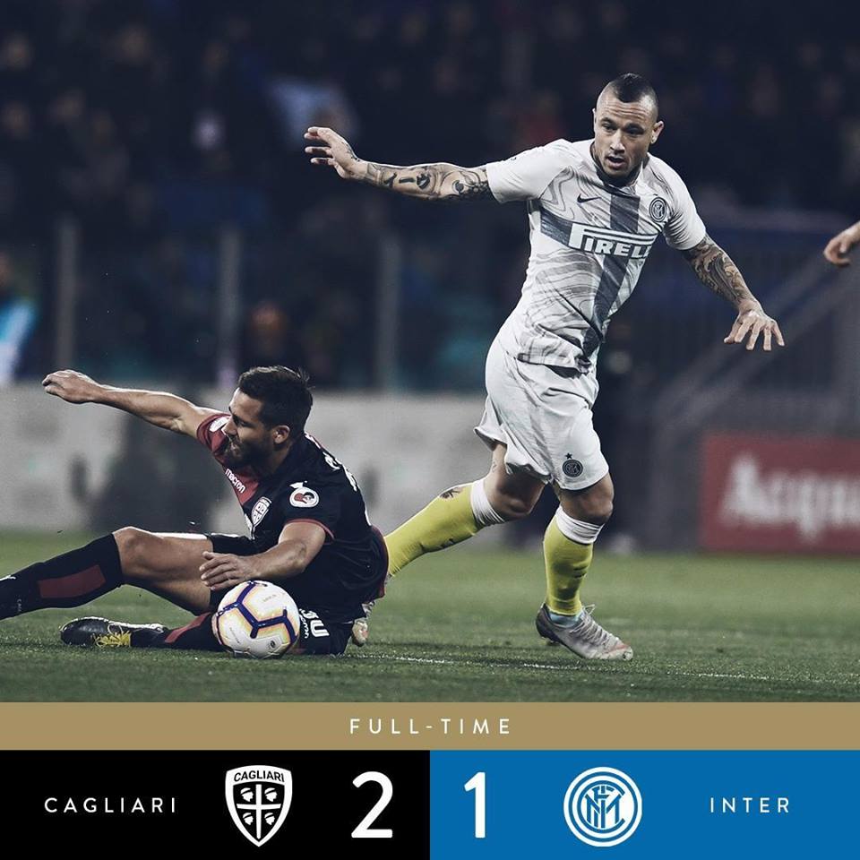 خسر إنتر ميلان أمام مضيفه كالياري 1-2، في افتتاح مباريات الجولة السادسة والعشرين للدوري الإيطالي لكرة القدم.