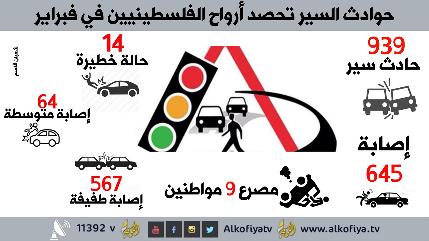 حوادث السير تحصد أرواح الفلسطينيين خلال فبراير