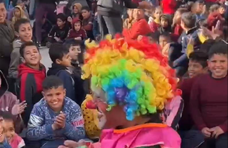 فيديو | الأطفال النازحون يتفاعلون مع "البلياتشو" في أحد مراكز الإيواء بقطاع غزة