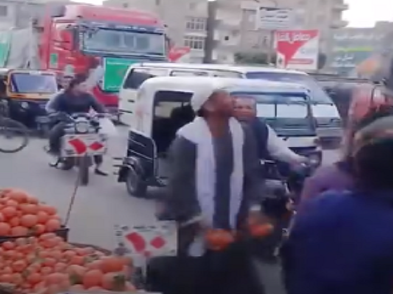 بائع فواكه مصري يلقي البرتقال على شاحنات المساعدات لغزة