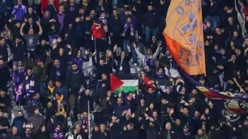 جماهير فيورنتينا الإيطالي ترفع علم فلسطين