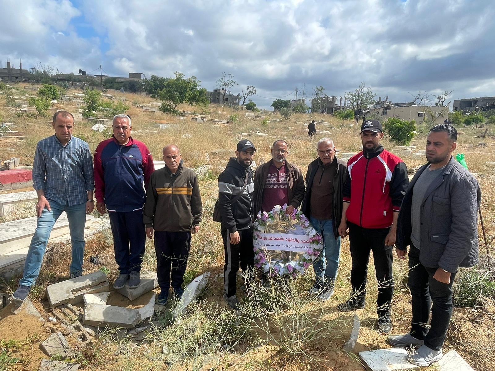 "اللجنة الوطنية" تضع إكليلا من الزهور على ضريح الشهيد أبو الجديان ورفاق دربه بمقبرة بيت لاهيا