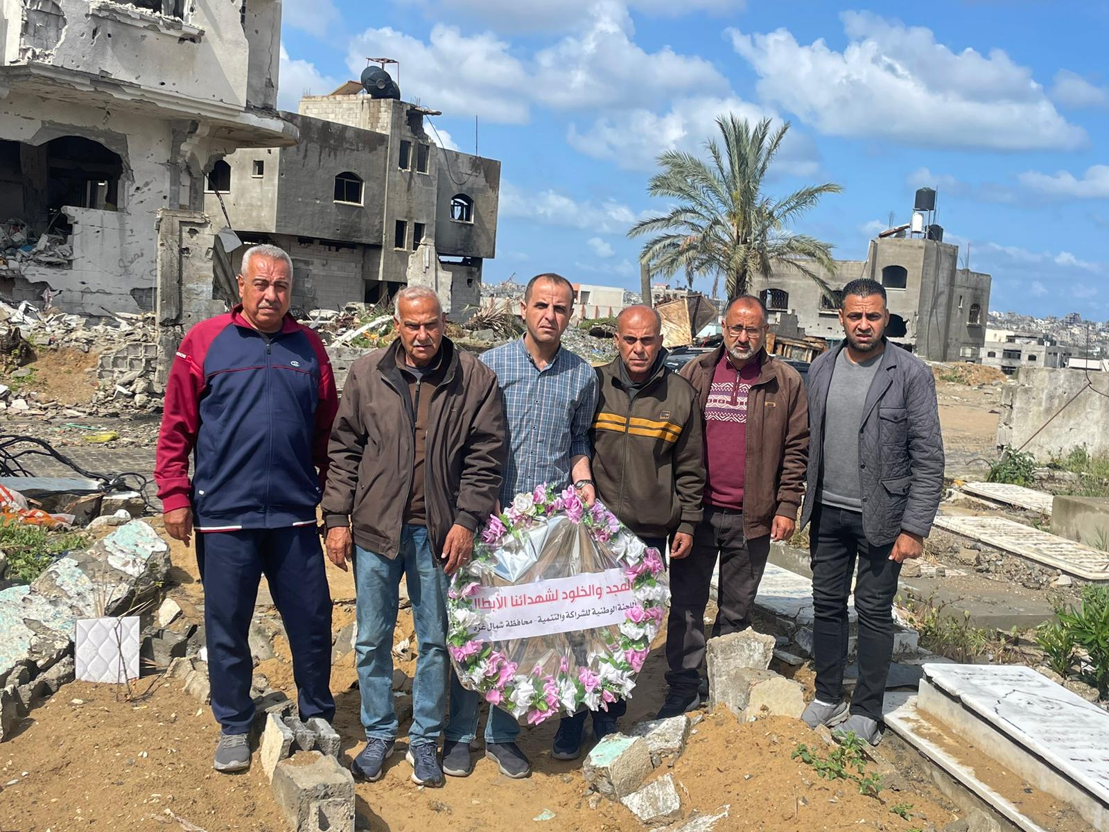 الكوفية غزة: وضعت اللجنة الوطنية للشراكة والتنمية إكليلا من الزهور على ضريح الشهيد القائد زياد أبو الجديان، ورفاق دربه من الشهداء الأبطال بمقبرة بيت لاهيا في شمال غزة.