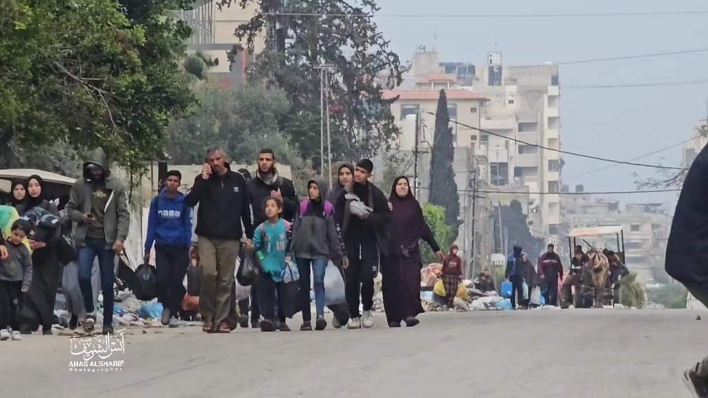 وتجمع مواطنون قرب دوار النابلسي على شارع الرشيد بمدينة غزة، أملاً في استقبال ذويهم النازحين بعد ورود أنباء عن عودة بعضهم من جنوبي القطاع إلى شماله.