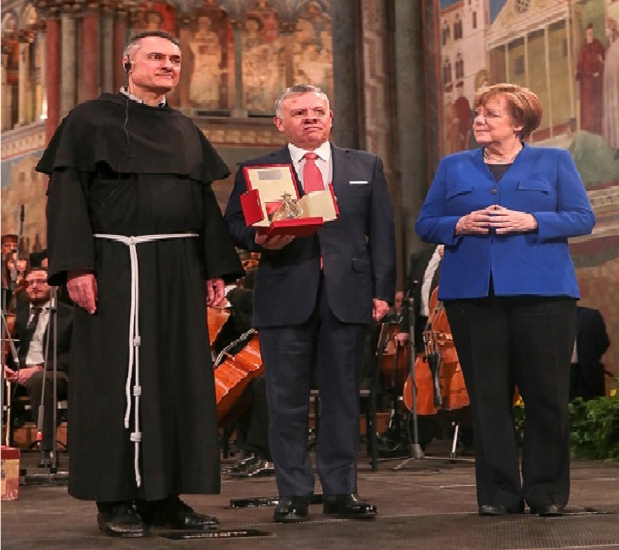 وقامت المستشارة الألمانية أنجيلا ميركيل حائزة المصباح العام الماضي مع حارس الدير الأسيزي الأب ماورو غامبيتي بتسليم العاهل الأردني الجائزة التي تمنح لشخصيات عالمية تقديرا لجهودها من أجل السلام وقيم العيش المشترك خلال احتفالية كبيرة تقدمها رئيس الوزراء الايطالي جوزيبى كونتى ورئيس مؤتمر الأساقفة الايطاليين الكاردينال غوالتييرو باسيتي ورئيس البرلمان الأوروبي أنطونيو تاجاني.
