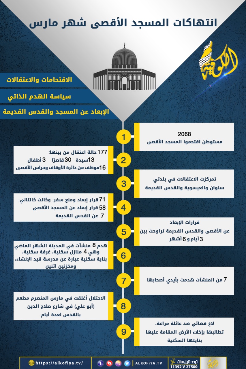 انتهاكات المسجد الأقصى خلال شهر مارس