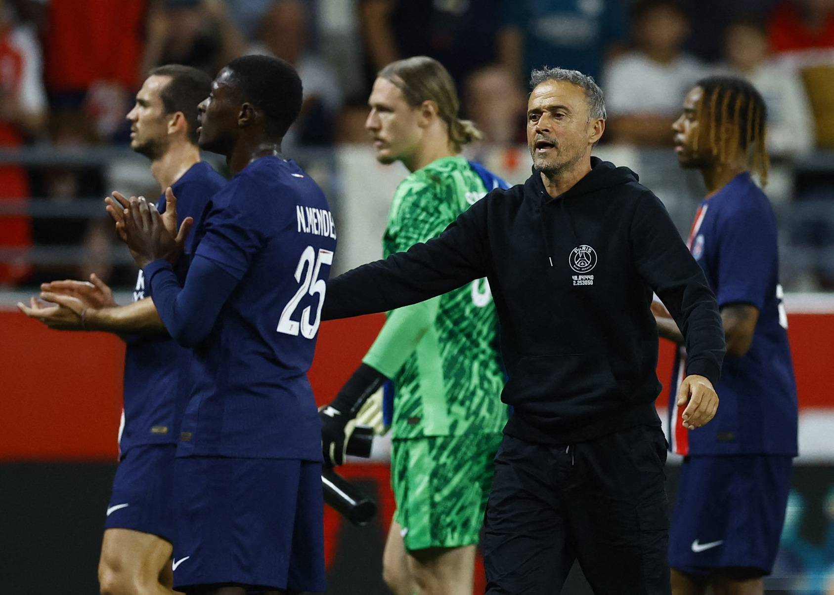 ولفت مدربه الإسباني لويس إنريكي، عقب التعادل المخيّب، إلى أنه لم تكن هناك «في الواقع أي مباريات سهلة» خارج الملعب للباريسيين منذ تسلمه مهام الإدارة الفنية للنادي.