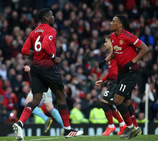 وأحرز بول بوجبا هدفي يونايتد من ركلتي جزاء في الدقيقتين 19 و79، فيما سجل فيليبي أندرسون هدف وست هام في الدقيقة 49.