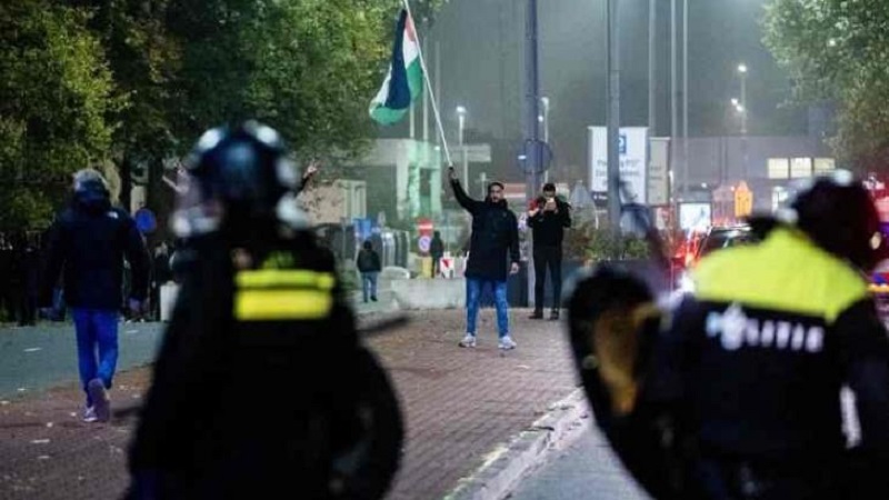 واندلعت مساء السابع من تشرين الثاني الحالي اشتباكات مع مشجعين إسرائيليين عقب قيام بعضهم بتمزيق علم فلسطين، عقب مباراة بين نادي أياكس أمستردام الهولندي بنادي مكابي تل أبيب الإسرائيلي في الدوري الأوروبي، بهولندا.