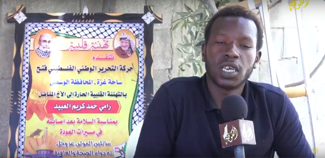 قال الجريح رامي العبيد لـ" الكوفية": " أنا صاحب فكرة أكبر مقلاع  بين مئات المشاركين في مسيرة العودة الكبرى، حلمت بتغير الواقع الذي نعيشه من خلال مشاركتي في مسيرة العودة، وفي مساء الجمعة 14/5/2018 خلال تواجدي بمخيم العودة المقام شرق البريج في المحافظة الوسطي، أطلقت قناصة الاحتلال نيران أسلحتها تجاه المتظاهرين ولم تفرق بين كبير وصغير، أصبت خلالها بطلق ناري متفجر في القدم اليسري، أدي إلي فتحة في القدم قدرها يزيد عن 15 سنتمتر، بالإضافة إلى حرق في الجلد، وتفتت العظام، ليتم علي إثره نقلي إلي مستشفي شهداء الأقصى وسط دير البلح، حيث قضيت هناك 15 يومًا من الألم المستمر برغم كم المسكنات الهائل الذي كان يصرفه الأطباء لي".