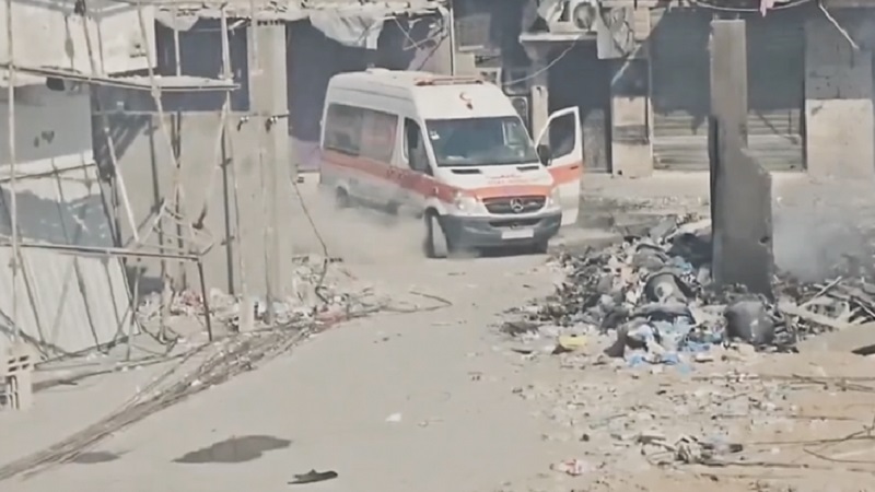 وأظهر مقطع مرئي، وتم تداوله على منصات التواصل الاجتماعي، سيارة إسعاف يعتقد أنها تحمل مصابين، وتم استهدافها بشكل كثيف من قبل طائرات "كوادا كابتر"، وهي تحاول الدخول لمستشفى كمال عدوان.