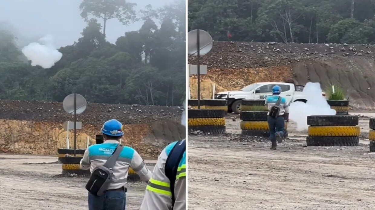 وفي المقطع الذي تبلغ مدته 49 ثانية، تظهر كتلة بيضاء تشبه "السحابة" تنزل ببطء في الهواء، بينما اقترب منها العديد من عمال المناجم الذين يعملون في مكان قريب بفضول.