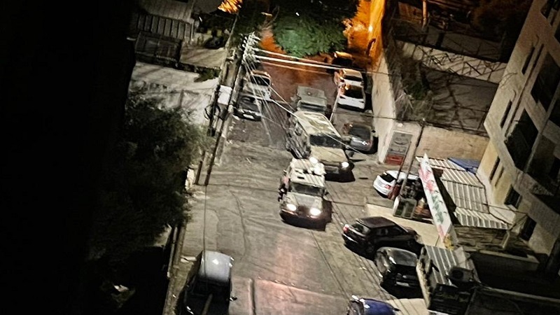 وأفادت مصادر محلية بأن قوات الاحتلال اقتحمت مدينة نابلس من حاجز دير شرف غربا، وانتشرت في محيط مخيم العين وحي رفيديا وشارع سفيان وشارع الجامعة، وسط إطلاق الرصاص وقنابل الصوت.
