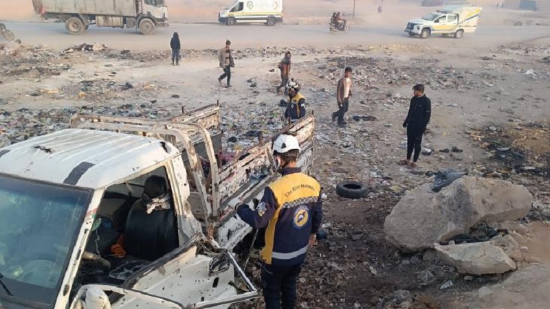 وقال الدفاع المدني السوري في بيان نشرته وكالة الأنباء الرسمية "سانا"، إن مجزرة مروعة راح ضحيتها 14 امرأة ورجل واحد، وإصابة 15 امرأة بجروح بعضها بليغة ما يرشح عدد الوفيات للارتفاع.