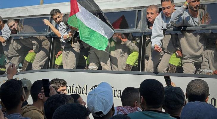 وأفرج الاحتلال اليوم عن 183 أسيرا ضمن الدفعة الخامسة من صفقة "طوفان الأحرار"، بينهم 42 أسيرا من الضفة الغربية، و3 مقدسيين، و138 من قطاع غزة، من بينهم 111 اعتقلوا بعد 7 أكتوبر/تشرين الأول 2023.