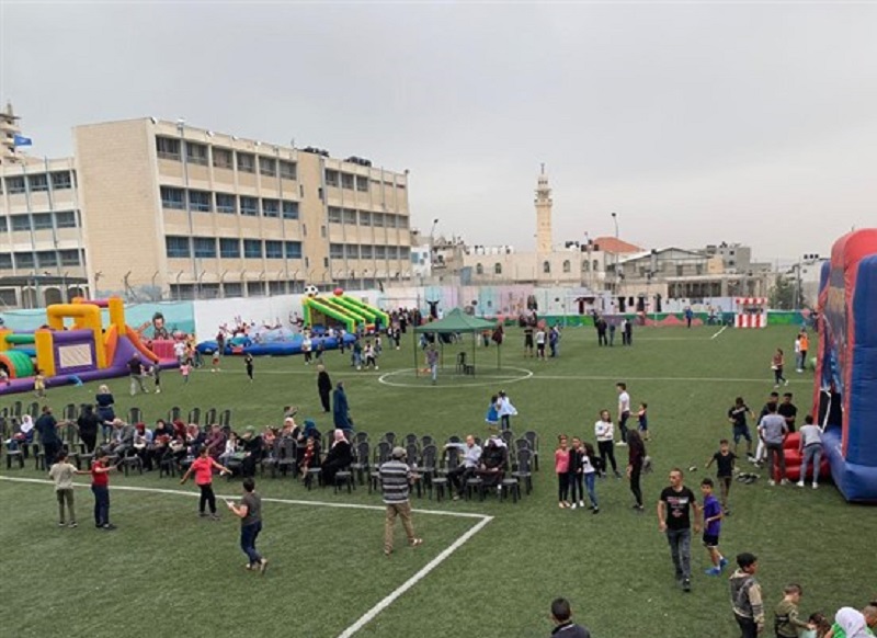 وأضاف "أن الاحتلال لا يريد أن يشاهد أي مظاهر للفرح لأبناء الشعب فيلاحق اليوم الأطفال المحتفلين بافتتاح الملعب المخصص لهم للترفيه عنهم، حيث يفتقر المخيم للساحات العامة، ويعاني المخيم من اكتظاظ شديد، حيث يعيش فيه أكثر من 25 الف لاجئ فلسطيني بمساحة 203 دونمات".