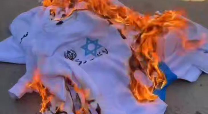 محررون يحرقون ملابس أجبرهم الاحتلال على ارتدائها