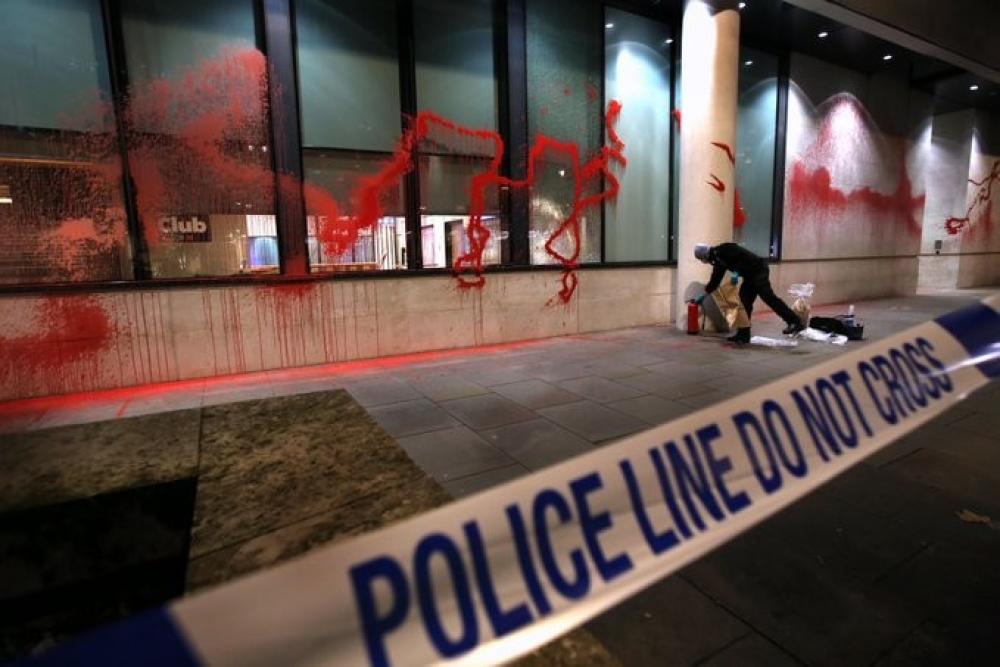 وأصدرت شرطة لندن بيانا أفادت فيه بتلقيها بلاغا عن "إتلاف ممتلكات" في مبنى "بي بي سي" بالمدينة، مبينة أن واجهته الخارجية تعرضت للرش بطلاء أحمر، كما تحطمت بعض نوافذه.