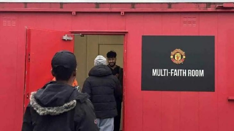 ونسق مسؤولو نادي مانشستر يونايتد مع رابطة المشجعين المسلمين للنادي على تجهيز هذه الغرفة التي تستوعب ما يصل إلى 20 مشجعا لأداء الصلاة.