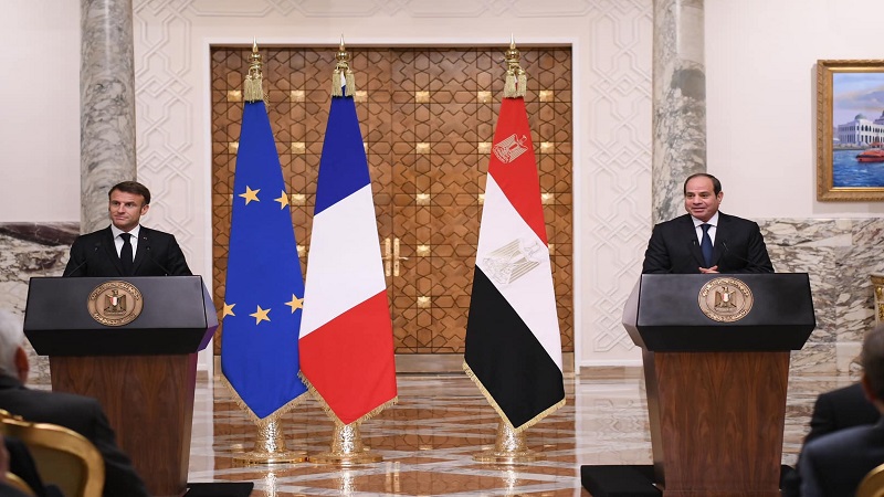 جاء ذلك خلال مؤتمر صحفي مشترك مع الرئيس الفرنسي إيمانويل ماكرون، بقصر الاتحادية بالقاهرة.