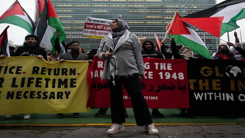 بالصور || مظاهرة أمام الأمم المتحدة بنيويورك تنديدا بعدوان الاحتلال ومطالبة بإيقاف "الابادة الجماعية"