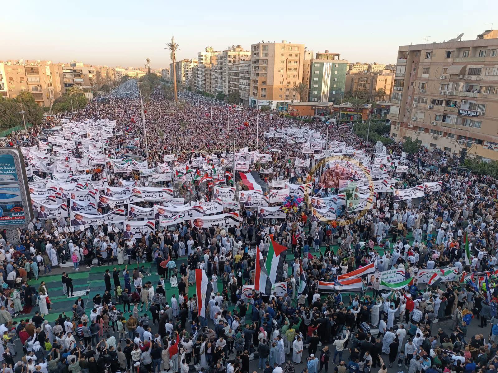 شهد معبرُ رفح الحدوديُّ تظاهراتٍ حاشدةً شارك فيها الوافدون من مختلفِ المحافظاتِ المصريةِ لتجديدِ تضامنِهم مع أهالي قطاعِ غزة، وإعلانِ رفضِهم للتهجيرِ والمطالبةِ بوقفِ إطلاقِ النار، بالتزامنِ مع زيارةِ الرئيسِ الفرنسيِّ إيمانويل ماكرون إلى مدينةِ العريش.