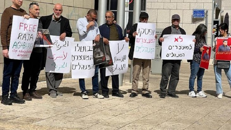 أم الفحم - نظم عددا من فلسطينيو الداخل المحتل، اليوم الأربعاء، وقفة احتجاجية أمام المحكمة المركزية في مدينة حيفا، رفضًا لقرار تحويل القيادي في حركة "أبناء البلد" رجا إغبارية للاعتقال الإداري.