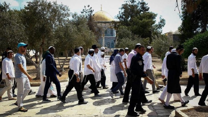 وذكرت مراسلتنا أن المستوطنين أدوا طقوسًا تلمودية في ساحات المسجد، وتحت حراسة من قوات الاحتلال.