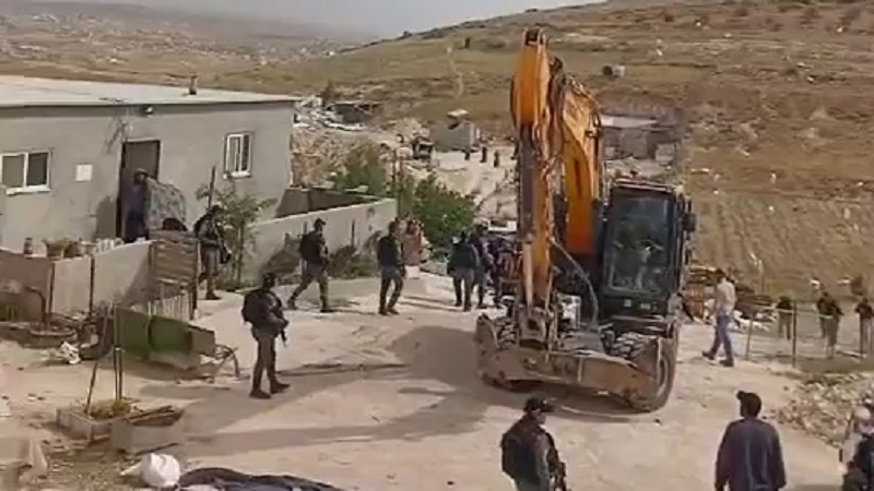 بالفيديو || الاحتلال يهدم منزلاً بمسافر يطا