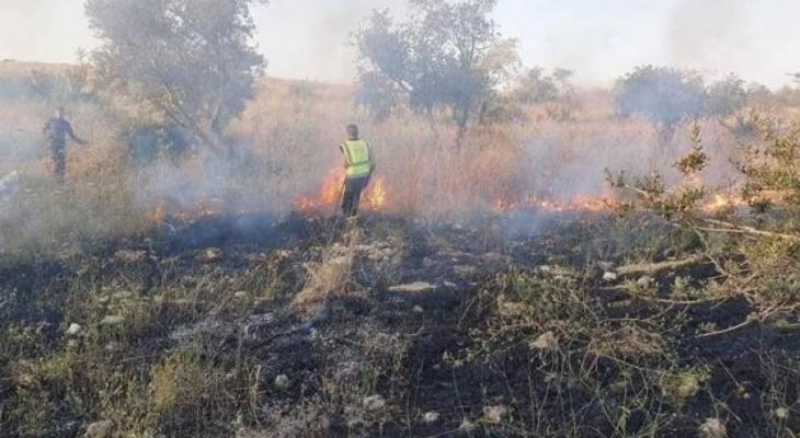 مستوطنون يحرقون محاصيل قمح في سهل برقة بنابلس