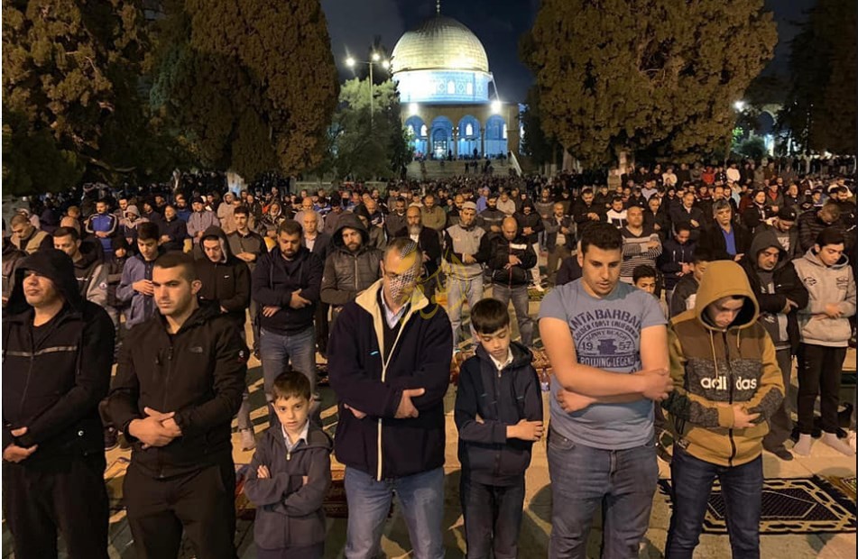 عشرات الآلاف يؤدون صلاة العشاء والتراويح بالأقصى