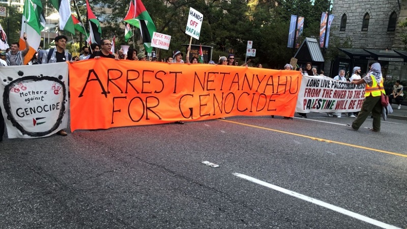 وحملوا الأعلام الفلسطينية، ولافتات كتبوا عليها، عبارات، مثل: "أوقفوا الإبادة الجماعية"، و"الصمت يعد شراكة في الجريمة"، "وافتحوا معبر رفح وأنقذوا المدنيين"، و"نعم للخبز، لا للقنابل".