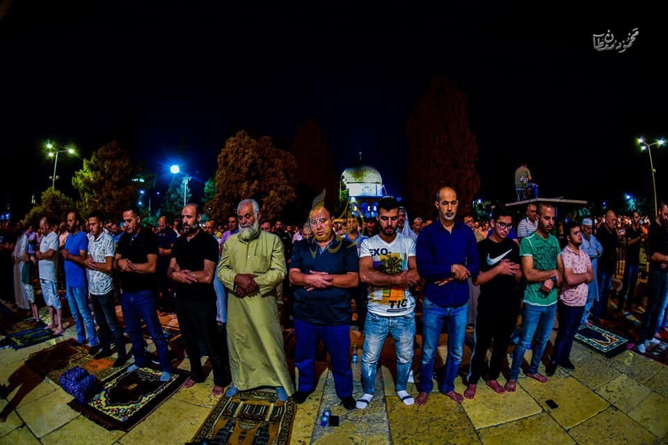 وأفاد شهود عيان بأن آلاف المواطنين وفدوا للأقصى منذ ظهر اليوم، وأدوا صلاة المغرب فيه، فيما انضم آخرون للمشاركة في صلاتي العشاء و"التراويح".