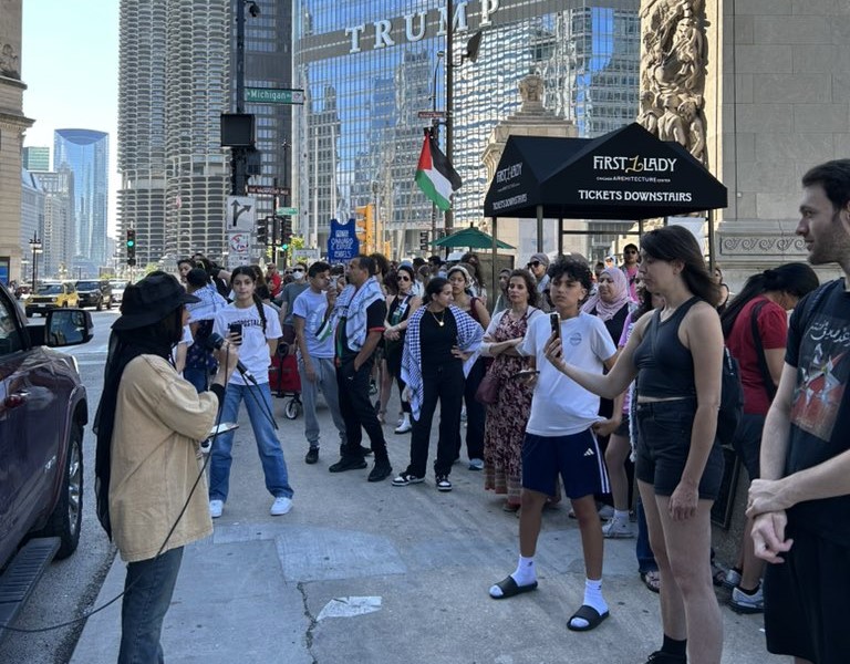 الكوفية إلينوي - تجددت في مدينة شيكاغو بولاية إلينوي، المسيرات والوقفات المؤيدة للقضية الفلسطينية، وخرج المتظاهرون للتأكيد على مطلبهم الأسبوعي بوقف الدعم الأميركي لإسرائيل، وإنهاء "الإبادة المستمرة" بحق الفلسطينيين في غزة.