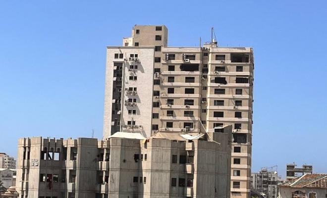 وكان الجيش قد أصدر أوامر إخلاء لساكني هذا البرج، في شارع جمال عبد الناصر، في منطقة الجامعات، والخيم المجاورة له، غرب مدينة غزة.