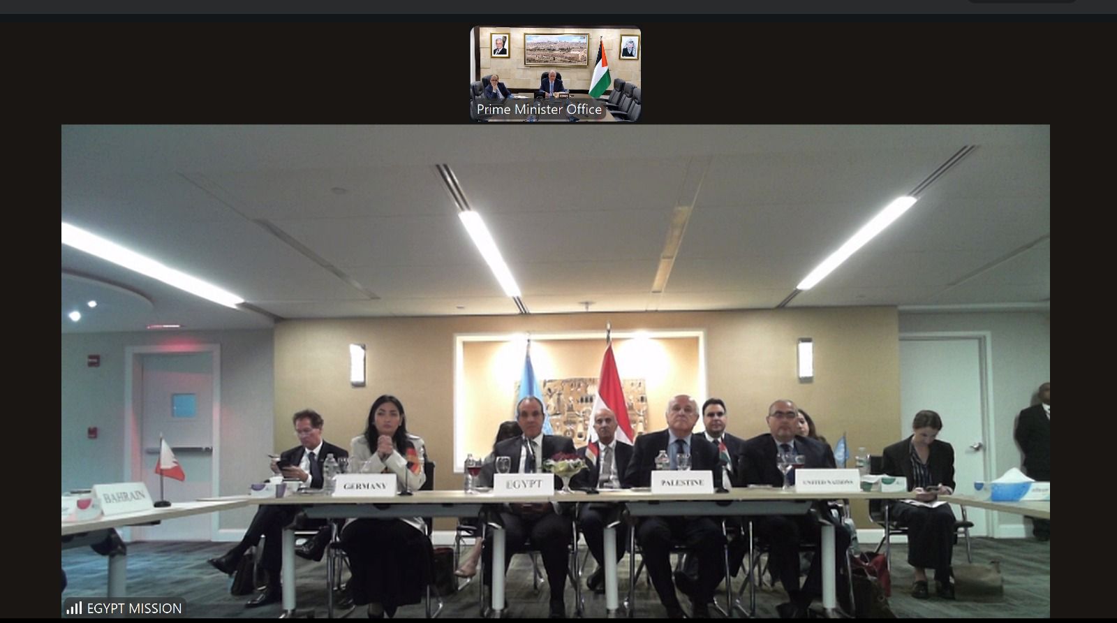 وشكّل الاجتماع الذي شارك فيه رئيس الوزراء محمد مصطفى عبر الاتصال المرئي من مكتبه برام الله، فرصة للتأكيد على الالتزام بخطة الإعمار والإنعاش المبكر في غزة، وإظهار الرغبة المشتركة في إنجاح المؤتمر الدولي الذي تعتزم مصر استضافته في القاهرة فور إعلان وقف إطلاق النار.